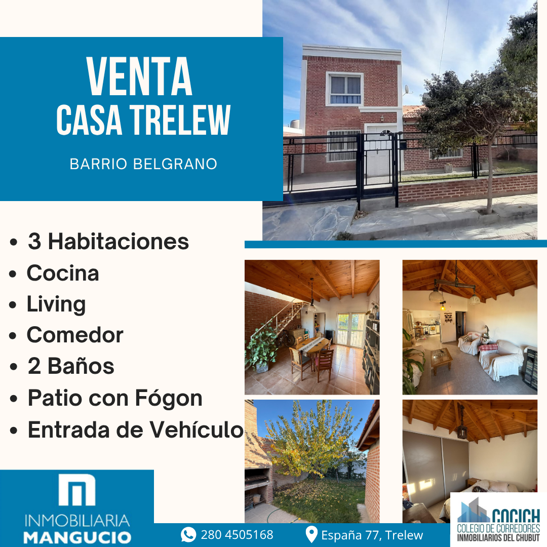 CASA VENTA TRELEW 3 HABITACIONES